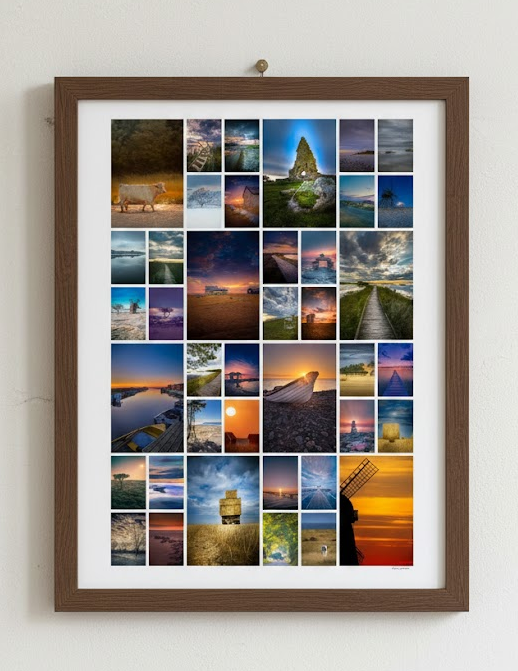 Nu kan du äga en bit av Ölands magi! Detta unika fotokollage är skapat med utvalda fotografier från min utställning "Magiska Öland" och fångar öns själ på ett enastående sätt.